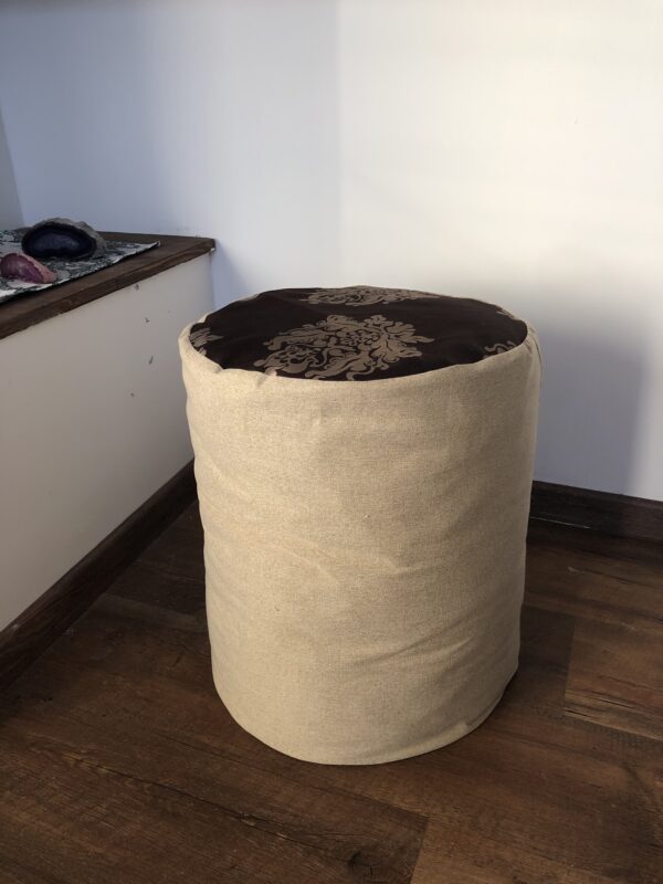 Bobík je navržen s ohledem na pohodlí i udržitelnost. Výplň tvoří textilní odstřižky, které by jinak zůstaly nevyužité – každý kousek tak pomáhá snižovat textilní odpad a šetří životní prostředí. Odstřižky jsou zašité v pevném plátěném vaku, který drží tvar a zajišťuje dlouhou životnost. Potahová látka je příjemná, pevná a odolná vůči běžnému používání. Spodní a vrchní stranu si zákazník může zvolit z dostupných látek, které jsou uvedeny přímo pod produktem.